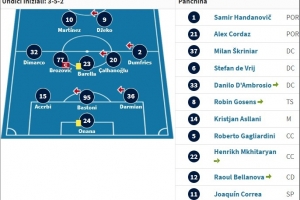 国米替补:1-汉达诺维奇(已退役)、21-科尔达兹(已退役)、5-加利亚尔迪尼(已离队)、6-德弗里、8-戈森斯(已离队)、11-华金-科雷亚、12-贝拉诺瓦(已离队)、14-阿斯拉尼、22-姆希塔良、33-丹布罗西奥(已离队)、37-什克里尼亚尔(已离队)、90-卢卡库(已离队)